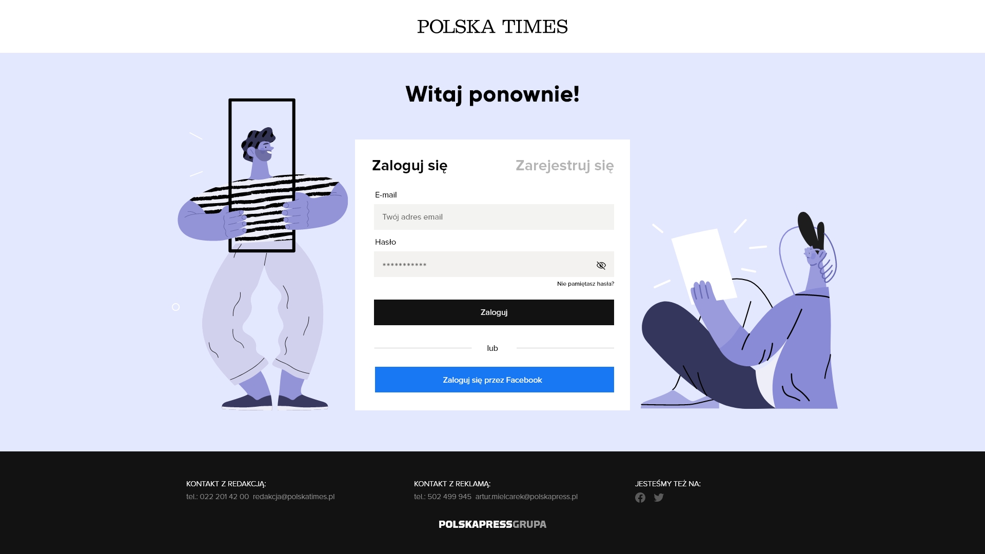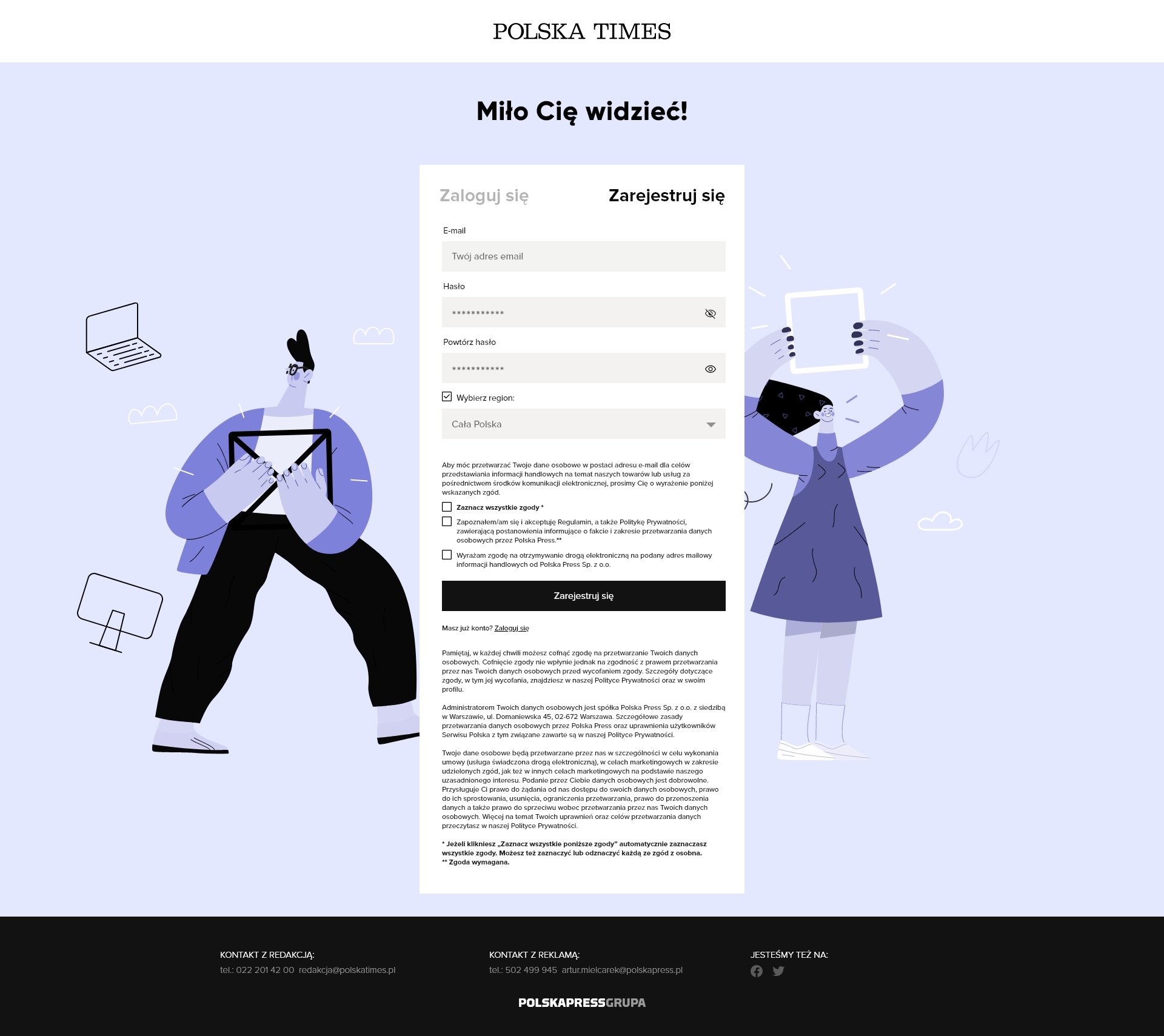 logowania, rejestracji i błędu dla portalu informacyjnego